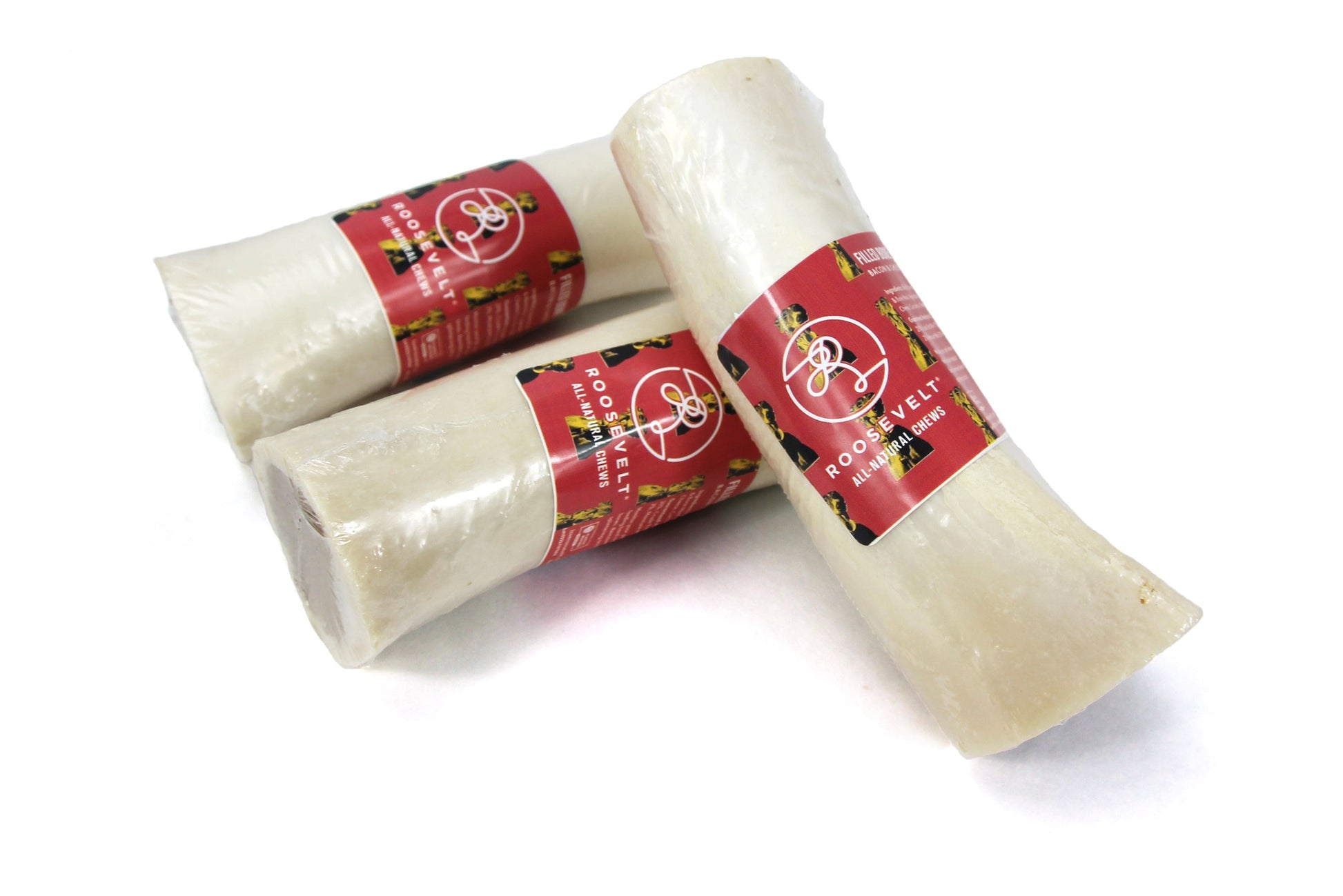 Roosevelt Bacon & Cheese Stuffed Bones¡ªdid someone say Bacon; Natural beef bone filled with bacon and cheese flavored filling and baked. These are super tough chews that provide long-lasting relief from boredom and stress. Plus, they help support dental hygiene as they¡¯re chewed. Great for excited chewers.